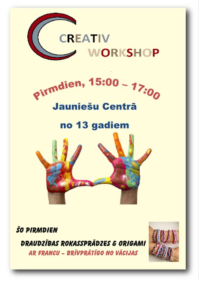 Sveiks! Brīvprātīgā no Vācijas Franka, aicina Tevi izbaudīt skolņu brīvlaiku un apgūt interesantas lietas! Nāc plkst. 15.00!