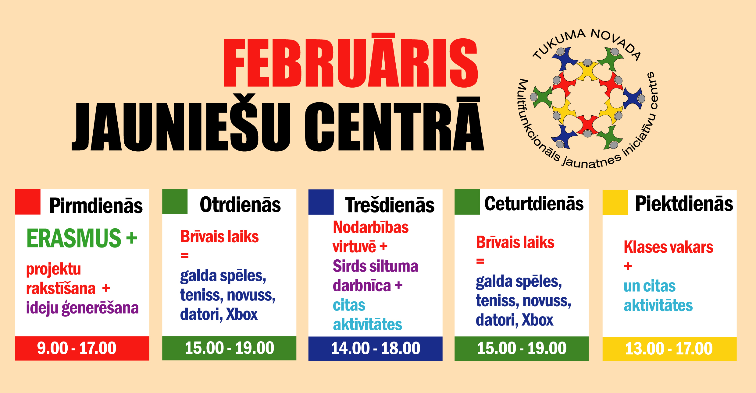 No janvāra līdz pat jūnija beigām, Eiropas brīvprātīgā darba ietvaros jauniešu centrā strādā divas brīvprātīgās no Vācijas - Jana un Franka. Meitenes apgūst latviešu valodu, iepazīst Tukumu un dzīvi Latvijā, strādā jauniešu centrā un, apgūstot jaunatnes darbinieka profesiju, veido dažādas interesantas aktivitātes un pavada laiku kopā ar jauniešiem.